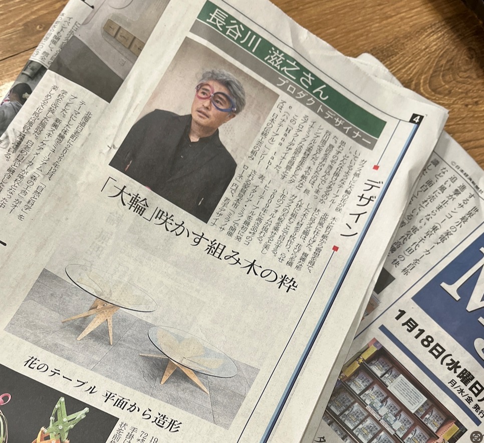 1月18日の日経MJさんでHana tableとデザイナーのシゲハセガワ(長谷川滋之)を大きくご紹介いただきました!